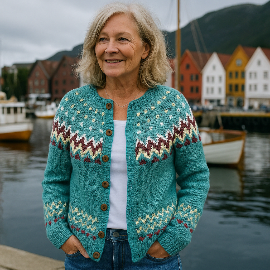 קרדיגן נעים ומעודן שמשלב נוחות רכה עם דפוס מרהיב. העיצוב עם הסריגה הרחבה מציע תחושת רגיעה, מושלם לימים קרירים או כשכבת עליונה מעל החולצה האהובה עליך. כפתורים דקורטיביים ודפוס צבעוני על הכתפיים והשרוולים יוצרים מראה נצחי.