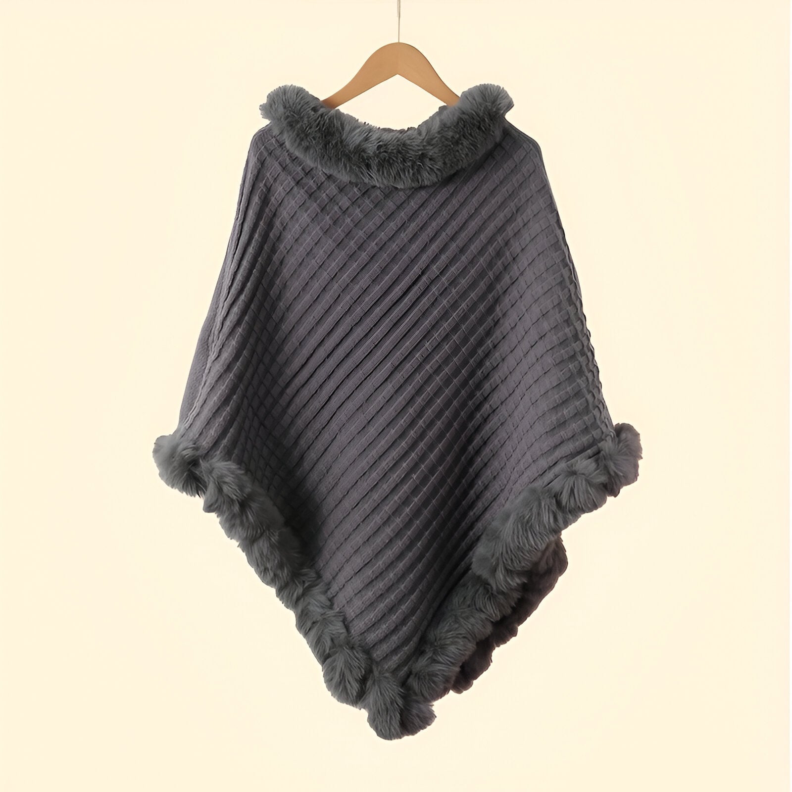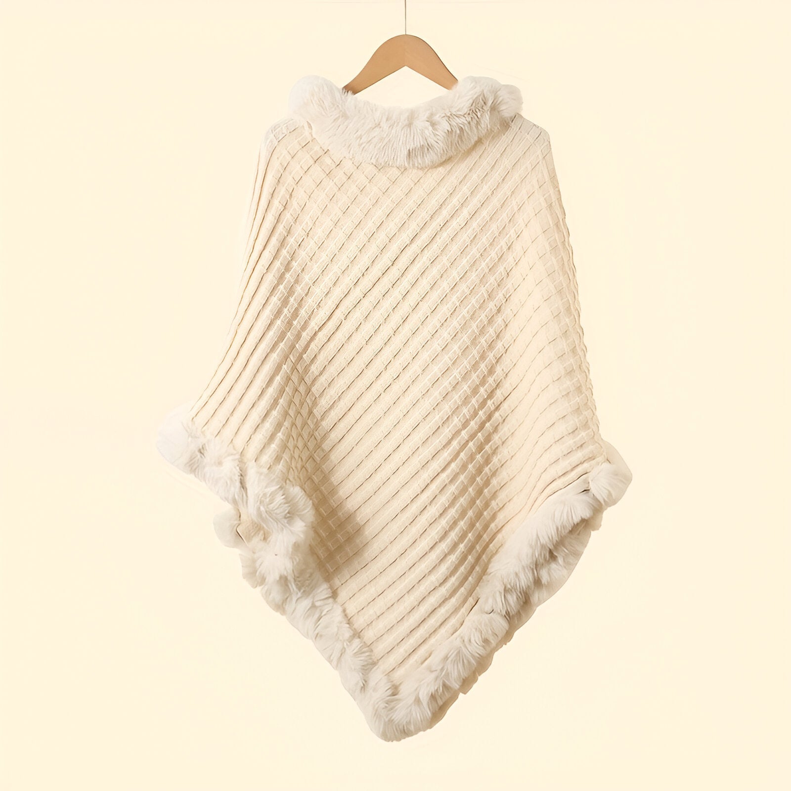 MELINA פונצ'ו חורפי אלגנטי עם גימור פרווה