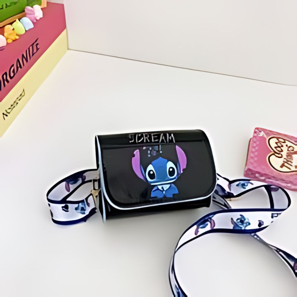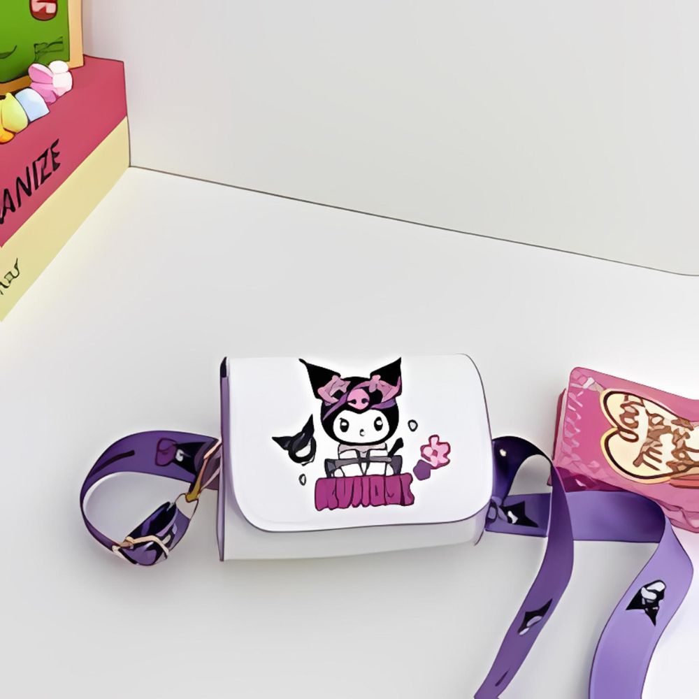 תיק צד מיני עם הדפס דמות בסגנון קריקטורה, במראה כיפי ומודרני. מושלם להוסיף נופך משחקי למלתחה שלך או כמתנה מקורית.